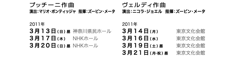 2011 年 3 月14 日(月)東京文化会館 3 月16 日(水)東京文化会館 3 月19 日(土)東京文化会館 3 月21 日(月・祝)東京文化会館